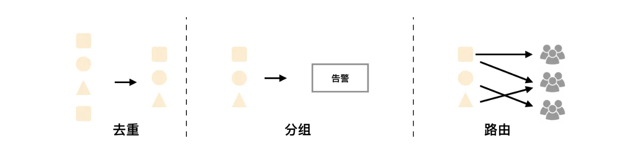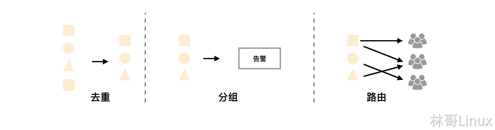 Alertmanager除了提供基本的告警通知能力以外,还主要提供了如:分组、抑制以及静默等告警特性: